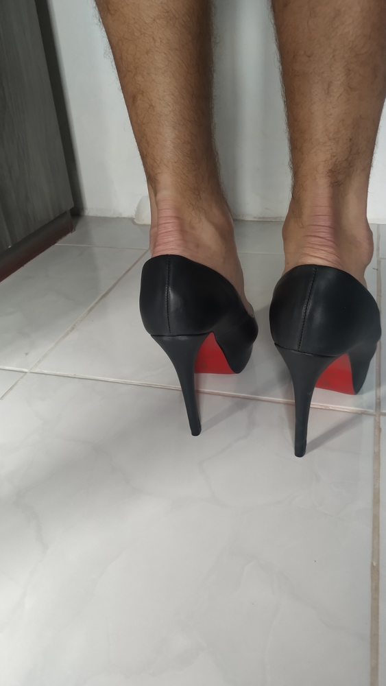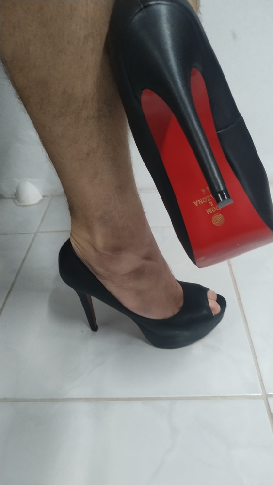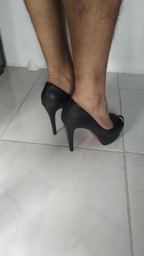 Adoro me exibir de salto e gozando nos sapatos de minha mulher, portanto comente a vontade que nos motiva a fazer mais!!!!